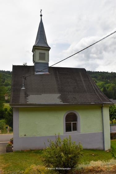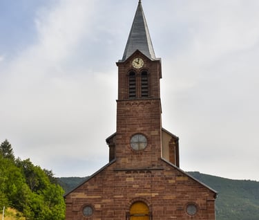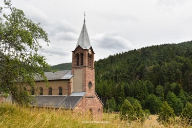 À La Chapelle d'Ermensbach, prend le chemin sur ta gauche. Suis La Croix jaune, elle te mène jusqu'à l'église de Rimbach.