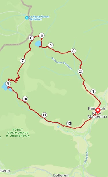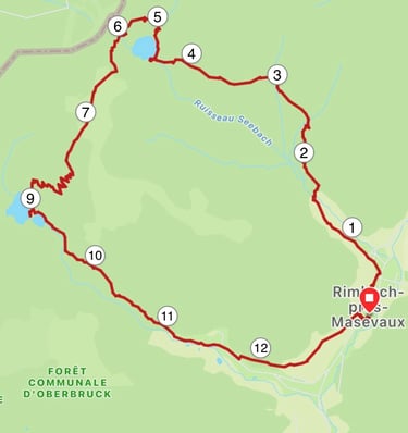 D'abord dans le village de Rimbach puis dans la forêt, ça monte jusqu'au lac !
