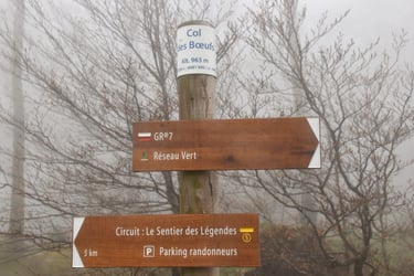 Un peu avant le 16e kilomètre tu arriveras au Col des Boeufs où tu quitteras le GR pour suivre la trace jaune sur ta gauche.