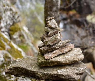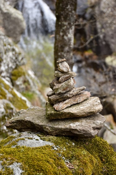 Si tu observes bien, tu peux apercevoir des cairns plus ou moins grands tout le long de ton trajet.