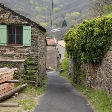 Tu arrives sur un pont en pierre, traverse le. Une dernière petite bosse à gravir et tu arrives aux premières maisons de Falgouze.