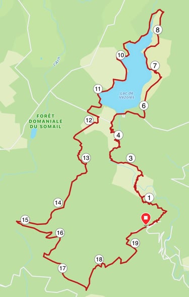 Vers le début du 12e kilomètre, tu auras le choix entre suivre le tracé jaune ou le GR, j'ai personnellement suivi le GR.