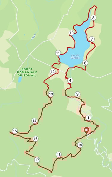 A peu près 2,5km après le Col des Boeufs, tu arriveras au Col des Sept Frères ou tu suivras le chemin forestier sur ta gauche (suis bien les panneaux).