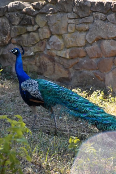 Tu pourras observer des chèvres, des cochons, des poules et des lapins dans leurs enclos. En liberté, tu verras de magnifiques paons ! Si tu as de la chance ils feront la roue pour toi.