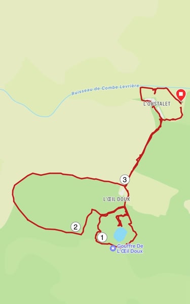 Le Gouffre de l'Oeil Doux est un cénote par effondrement dont l'eau de surface est douce et salée en profondeur. Il est constitué de hautes parois calcaires et verdoyantes de 40 mètres de haut qui dominent une étendue d'eau verte émeraude d'une profondeur de 14 mètres avec un fond comblé de vase.