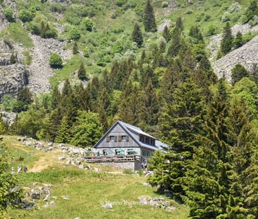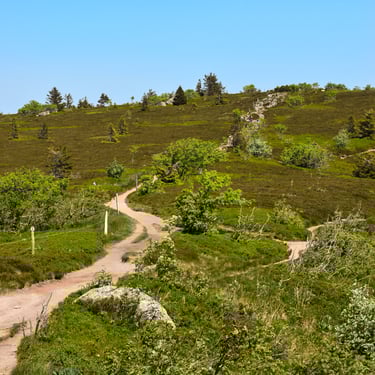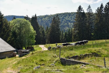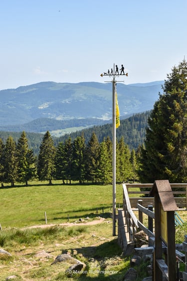 La dernière montée de la randonnée est devant toi. Tu verras apparaitre plusieurs maisons sur ton chemin dont le Chalet Erichson du Club Vosgien. C'est l'occasion de remplir tes gourdes ou de te ravitailler si besoin.