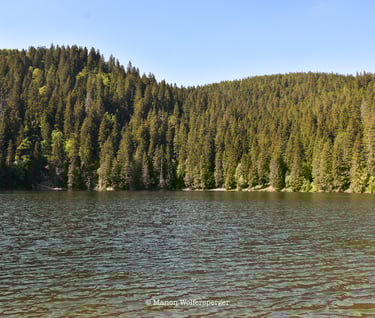 Ces lacs de montagne m'émerveillent toujours ! Tout ce vert autour et les arbres qui vont jusqu'au bord du lac, c'est magique ! Je pense que pour moi, le plus beau lac des Vosges est le lac du Forlet !