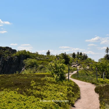 Tu arriveras sur un point de vue en roches. Tu auras une vue magnifique sur le lac du Forlet ainsi que sur la vallée de Munster. Tu pourras voir en fond la Forêt Noire et les Alpes si c'est suffisamment dégagé.